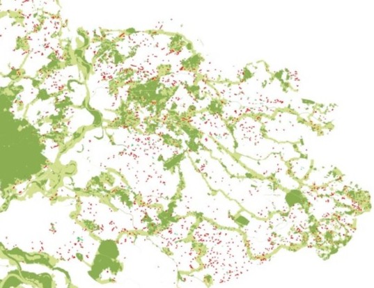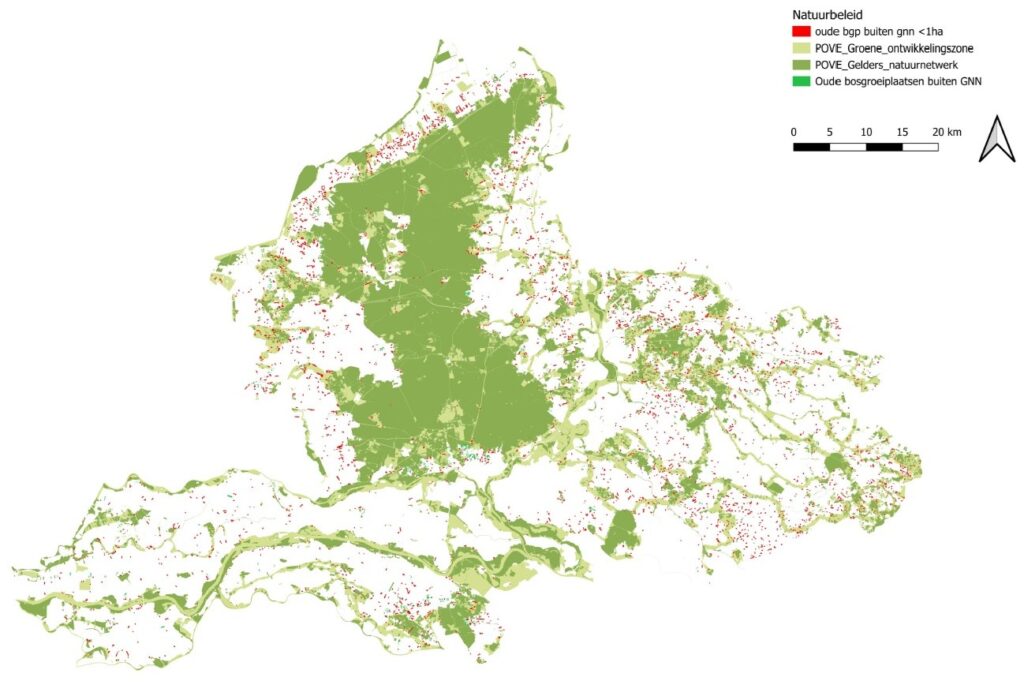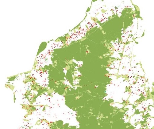 Uit deze kaart blijkt in één klap dat het niet om hectares draait, maar om aantallen. Dat dit scharniertjes van groenblauwe dooradering zijn, mede bepalend voor connectiviteit en samenhang van de natuur. Het zal zo’n vaart niet lopen, wordt er gezegd, maar als dat zo is, waarom dan sleutelen aan de regels?